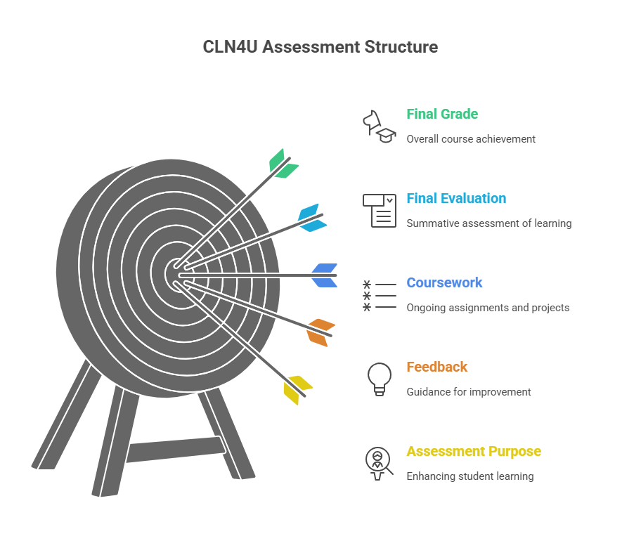 The main purpose of assessment in CLN4U is to improve student learning. Your teacher will use various methods to check your progress and give feedback so you know how to improve. This helps you understand your current level and what to work on next. Your final grade reflects how well you meet the course’s main goals, focusing on your most consistent work, though recent achievements are also important.